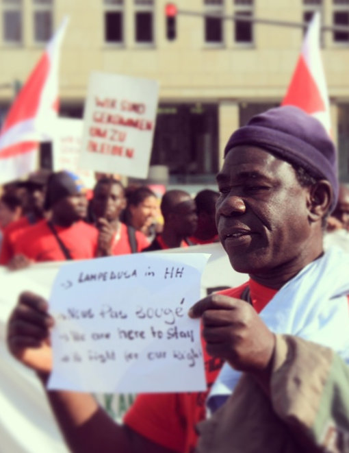 Am 1. Mai 2013 sind wir, die libyschen Kriegsflüchtlinge, in Hamburg in die Öffentlichkeit getreten und haben die Zusammenhänge, warum wir in Hamburg sind, sichtbar gemacht. Wir haben auch deutlich gemacht, warum für die Umsetzung unseres durch Italien anerkannten Flüchtlingsstatus die gesamte Europäische Union und eben auch Hamburg verantwortlich ist.