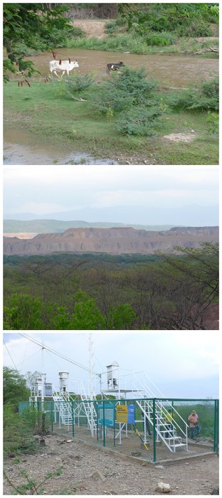Die für die Rekultivierung zuständigen Fachleute von Cerrejón haben nämlich einen völlig neuen Boden angelegt. Der Boden ist nun so zusammengesetzt, dass dort aus Afrika importiertes Büffelgras wachsen kann. Aus Sicht der Cerrejón-Wissenschaftler hat dieses Gras den Vorteil, dass es Hitze aushält, aber auch den Regen zur Regenzeit. Außerdem wird der neue Boden in der Mittagshitze nur noch rund 30 Grad C warm, der alte wurde bis zu 60 Grad C heiß. Die Cerrejón-Wissenschaftler sehen darin einen Vorteil. Meine Frage, welche Auswirkungen solche Veränderungen auf das Mikroklima hätten, haben die Cerrejón-Wissenschaftler zunächst gar nicht verstanden. Nach einiger Diskussion gestanden sie zu, dass sie sich mit dieser Frage bisher nicht befasst hätten.